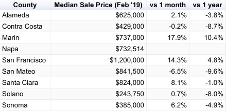 The last month for which we have median sale price data is February. San Francisco County saw strong month-on-month gains in February and we expect median sale prices to continue to track upwards over the next several months.
