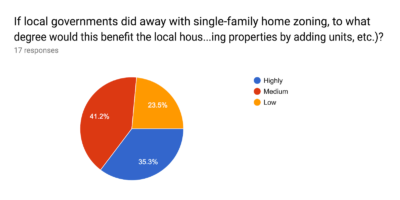 Over 85% of respondents say eliminating single-family zoning would benefit the local housing market.