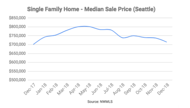 Here’s the trajectory of the median sale price for a single family home in Seattle over the past twelve months.
