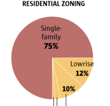 Shockingly, 75% of residentially-zoned land in Seattle remains restricted to single-family homes, placing a dubious constraint on the supply side for a region encircled by natural barriers.