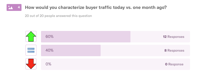 Buyer traffic has ticked up marginally over the past month